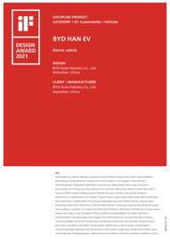 Shenzhen, China - Today, BYD proudly announces that its best-selling Han EV has won this year's iF Design Award, a world-renowned design prize, standing out against the nearly 10,000 other works participating in the hotly contested product design category, and becoming the first ever sedan model from a Chinese car brand to take home the award.