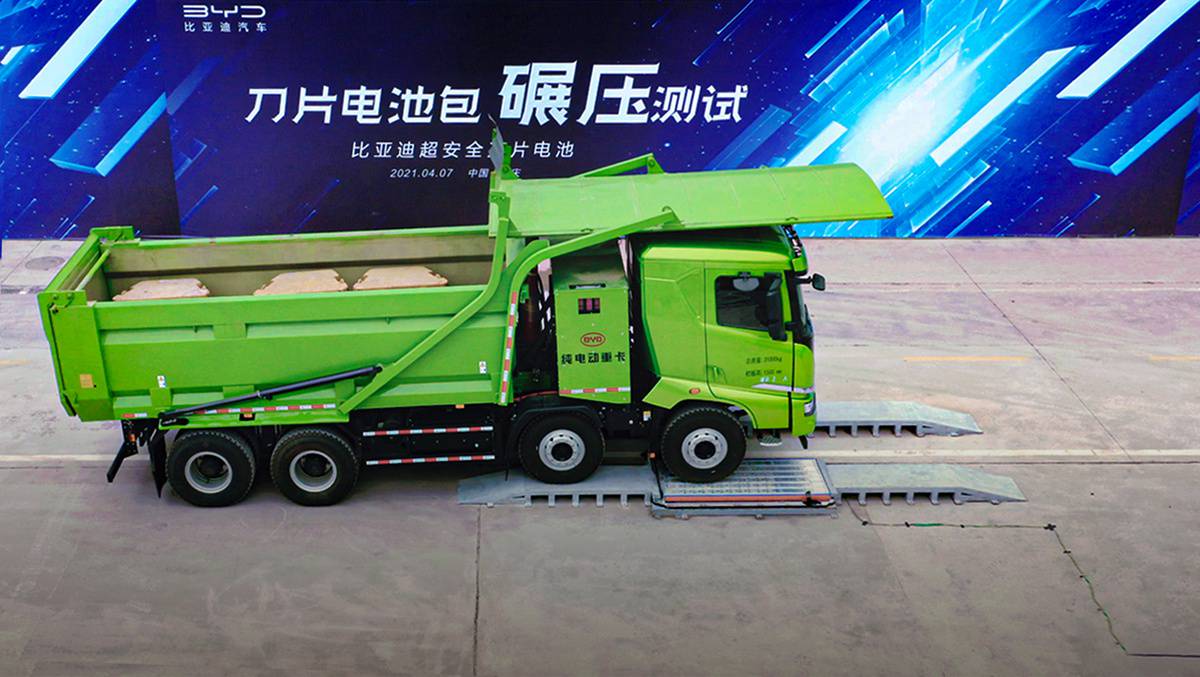 The Blade Battery successfully passed an extreme safety test that saw it being rolled over by a 46-ton heavy-duty truck